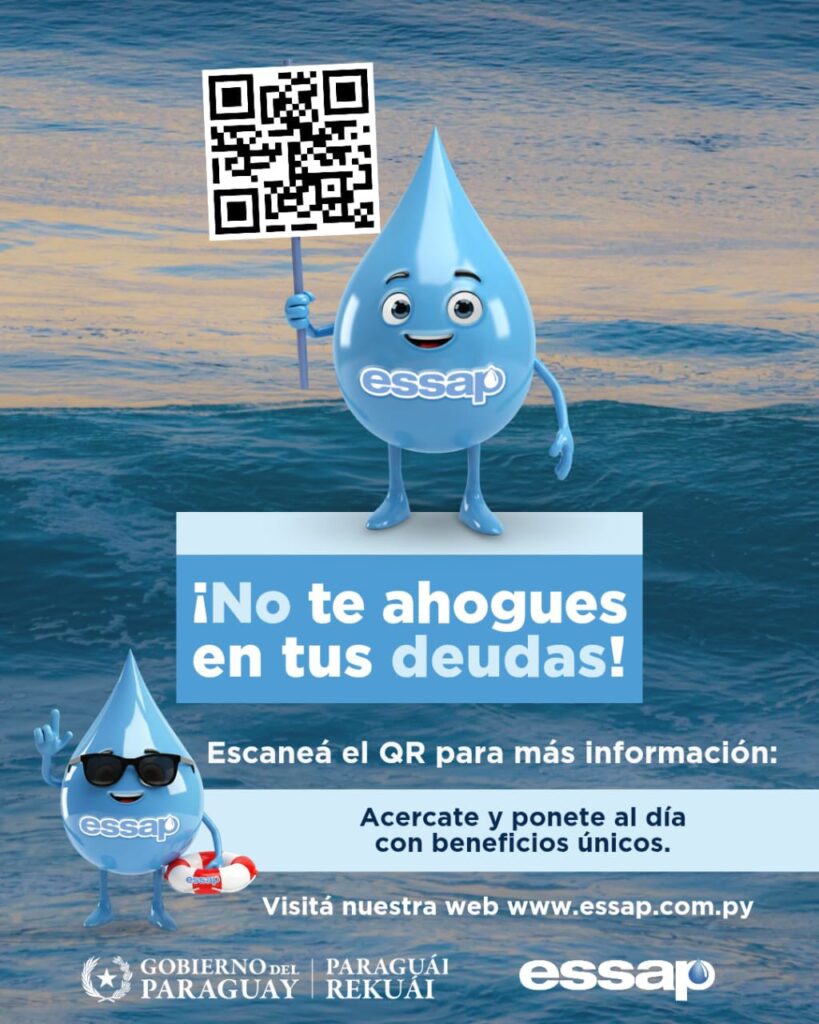 La Empresa de Servicios Sanitarios del Paraguay (Essap) activó la campaña “No te ahogues en tus deudas” con beneficios excepcionales para regularizar cuentas de agua y saneamiento, orientada a usuarios morosos y vigente hasta el 28 de febrero de 2026.