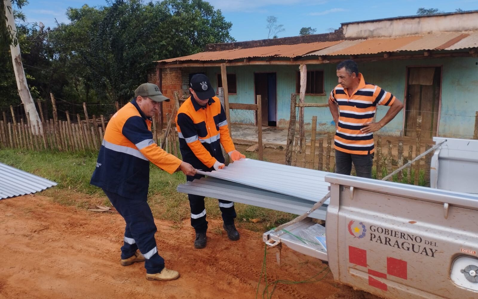 En Itapúa, 41 familias de San Pedro del Paraná recibieron materiales de reposición tras sufrir daños considerables. La ayuda incluyó: 306 chapas de zinc, 148 terciadas, 90 puntales, 41 colchones y 41 frazadas, con prioridad a los hogares con afectación severa.